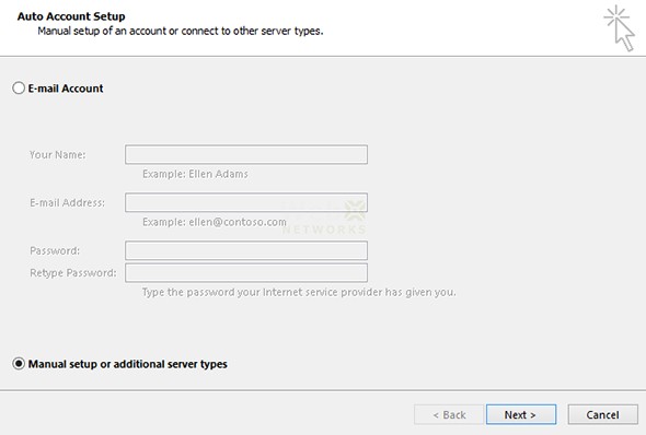 Step 3: Select (o) Manual setup or additional server types and click [ Next > ] button.