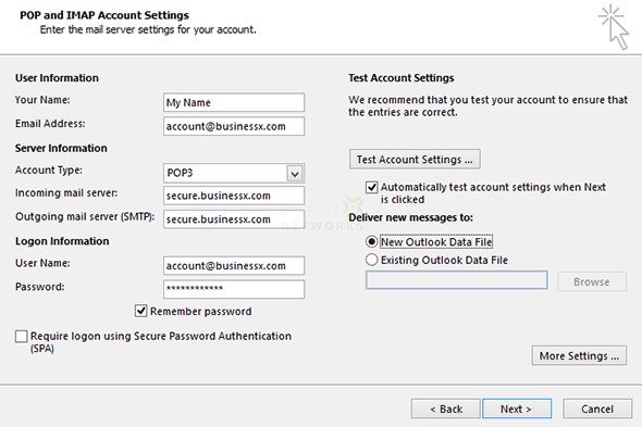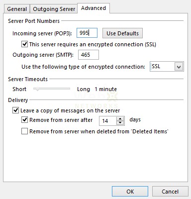 Account Type: POP3 (select POP3 if you want to download email to your computer, select IMAP if you want to keep emails on the server and want to access it from other computers as well. Using IMAP will use more disk space and it will keep growing as more emails are stored on the server).