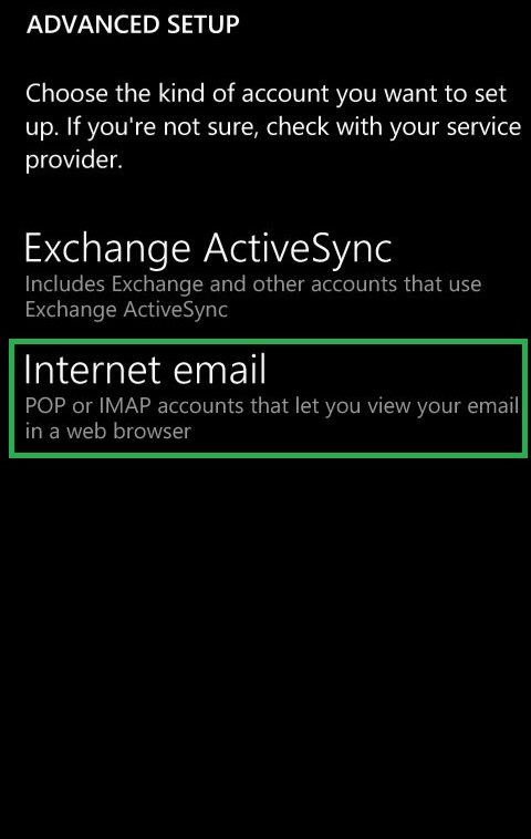 NOTE: it is preferable to use IMAP as the emails will not be downloaded and stored on your device.