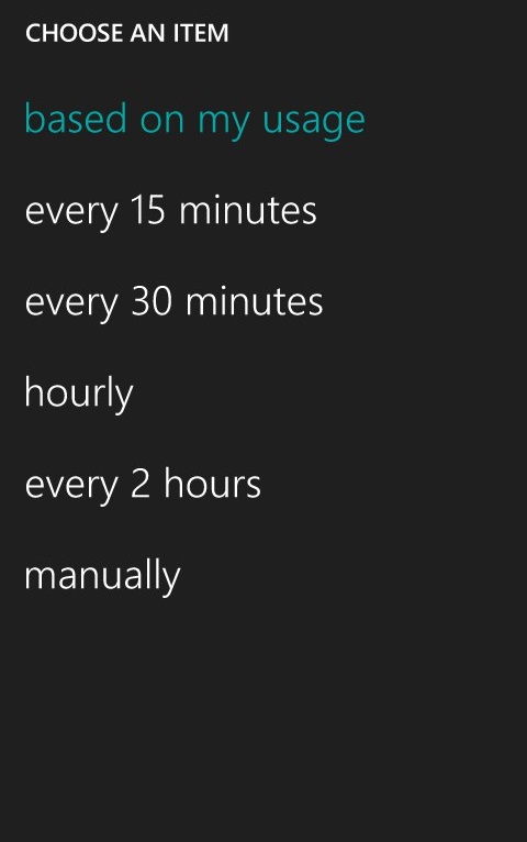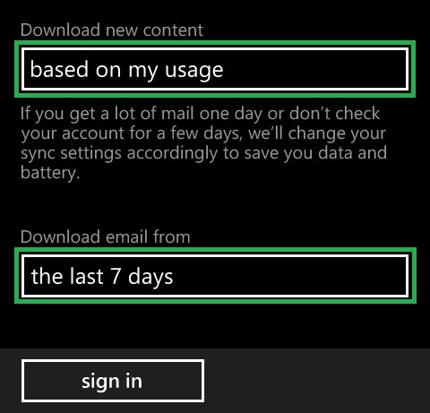 10. Download new content option allows you to select how often the emails on your device will be synchronized with your email account: